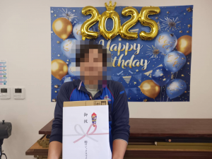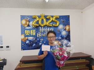 10月社員奥様バースデー「おめでとうございます。今後もご主人のサポートお願い致します」