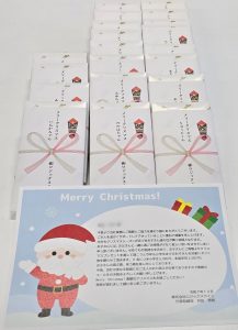 ささやかですが毎年弊社より小学生までのお子さんを持つ社員の奥様宛にクリスマスプレゼントを贈らせて頂いております。