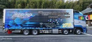 トラックのキャブ塗装とボディープリントは京都にあるリアライズ松田社長で制作しました。
