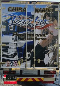 最大の特徴は観音扉(リア)に弊社のトラックを入れ込み女性ドライバーをイメージしたイラストを入れました。